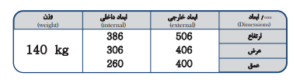 | ابعاد و وزن | – ابعاد خارجی: ۵۰۰۵۵۰۷۰۰ میلیمتر – ابعاد داخلی: ۴۰۰۵۰۰۶۵۰ میلیمتر – وزن: ۲۵۰ کیلوگرم. |