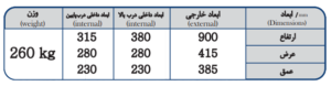پاسخ: ما مدلهای متنوعی با ابعاد کوچک تا بزرگ داریم. برای منزل، مدلهای ۴۰x۳۰x۳۰ سانتیمتر تا ۱۰۰x۵۰x۵۰ سانتیمتر پیشنهاد میشود.